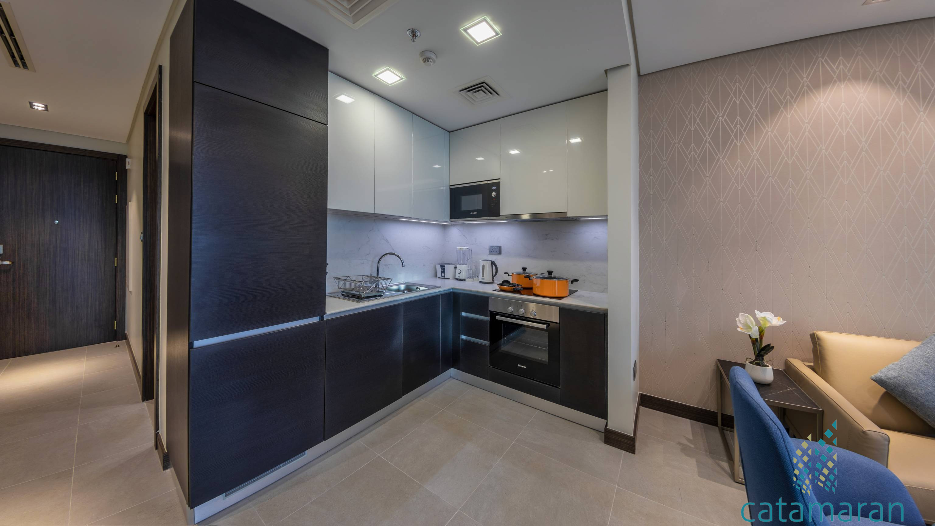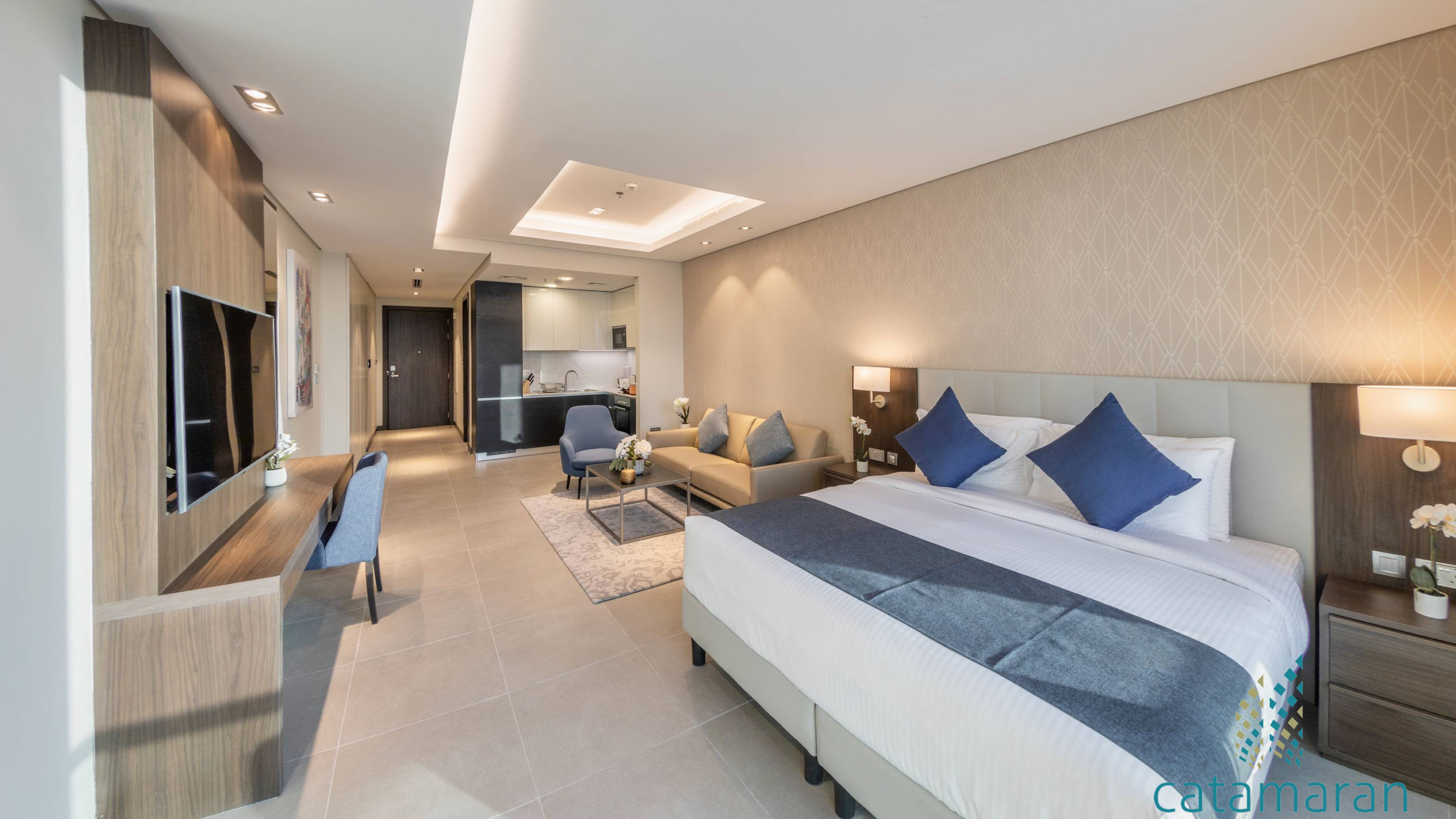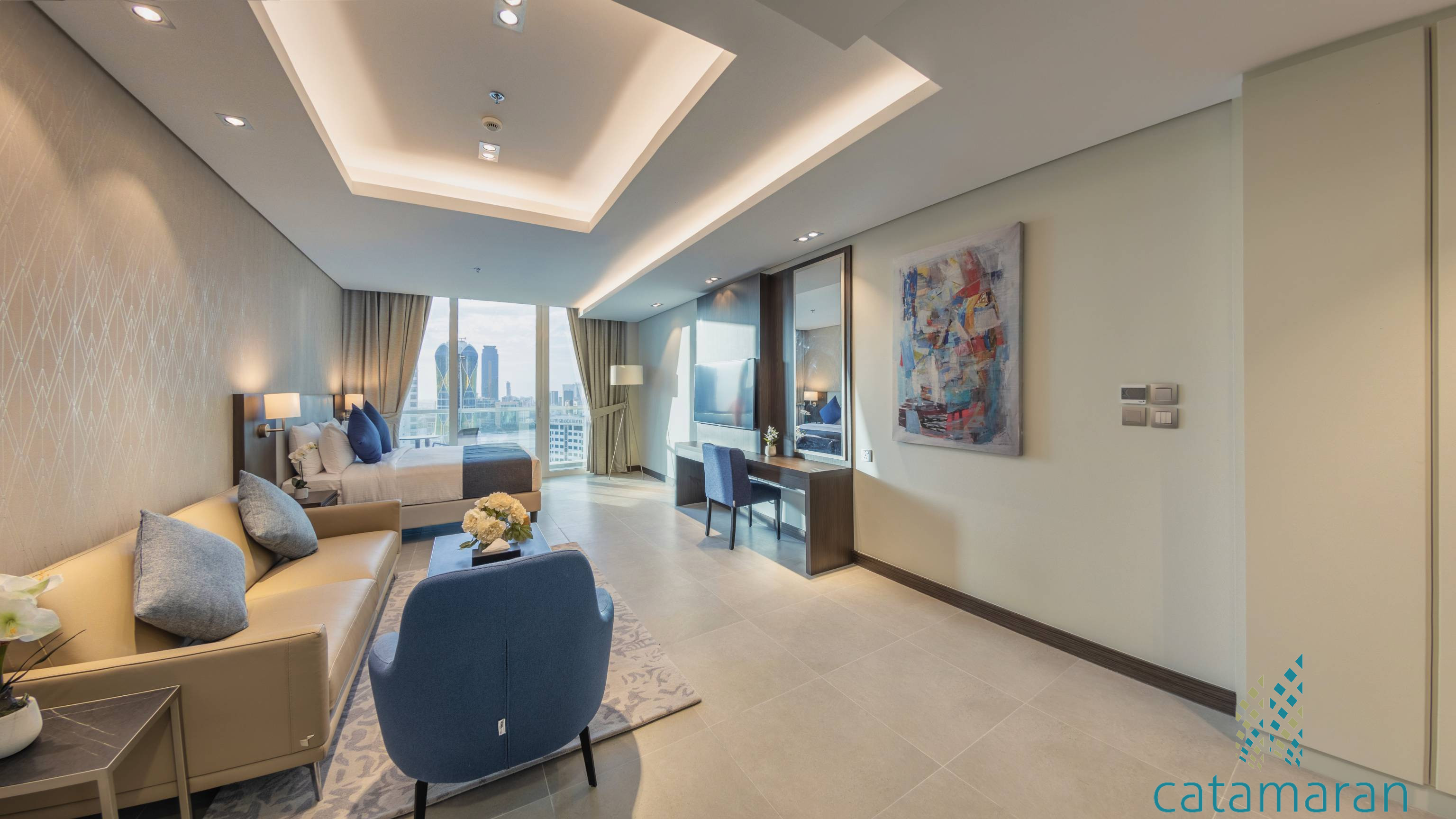 Brand new luxury studio apartment located in the heart of Seef District in Bahrain's latest high-rise building and one of it's most luxurious new developments, Catamaran Towers.